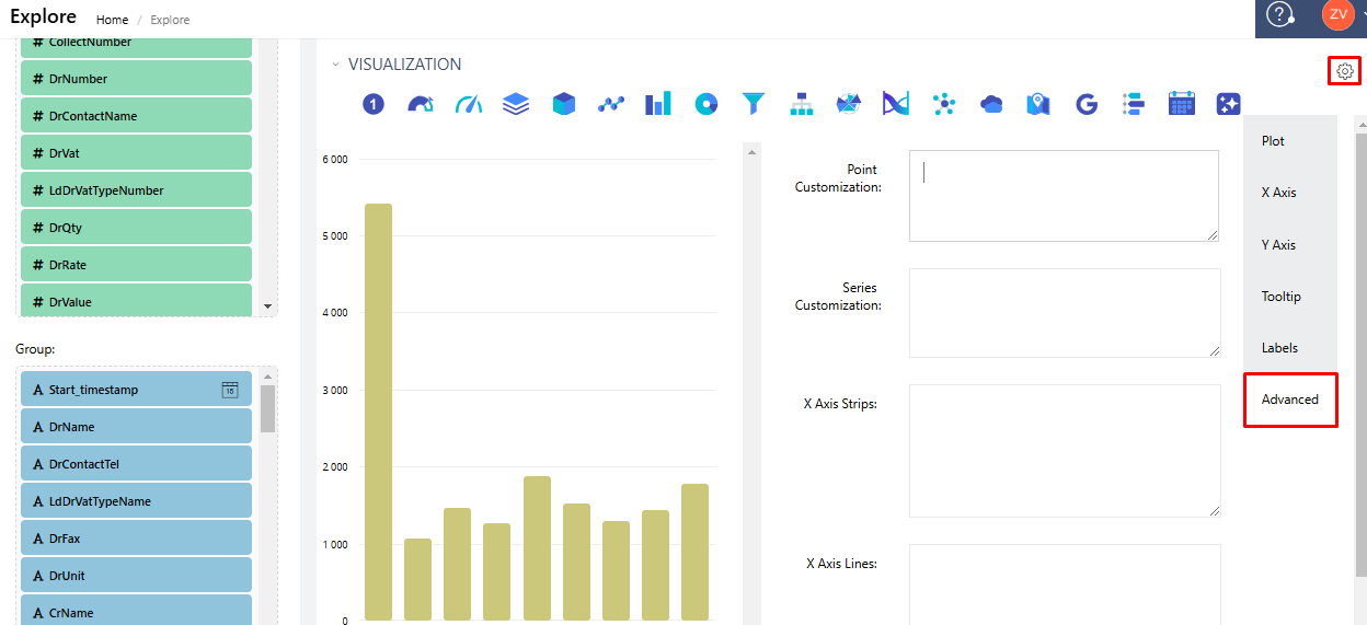 1. Having your explore open, navigate to the Advanced Settings on the Explore screen.