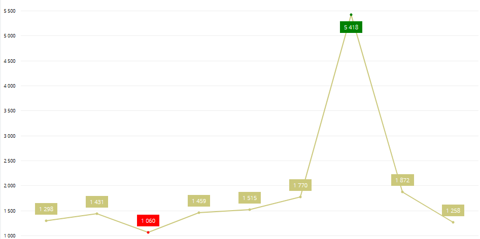 Some clients have requested that we highlight the MIN and MAX points on a graph to stand out. With the below JavaScript, we can accomplish this feat.