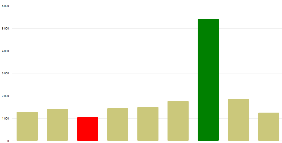 3. The Graph will now point out the MIN as RED and the MAX as GREEN, while keeping the other bars connected to the Theme applied.