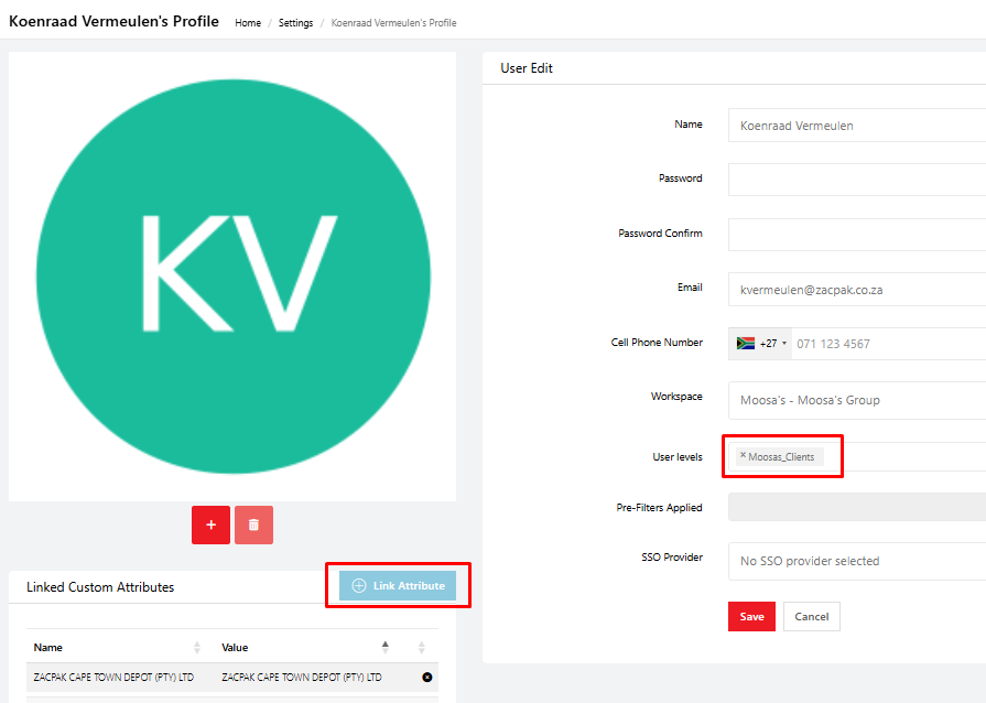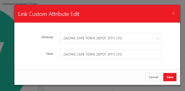 Select the created Attribute from the dropdown, and then type in the name in the Value field exactly as it is in the dataset. Again in this example it will be ZACPAK CAPE TOWN DEPOT (PTY) LTD. Then Save.