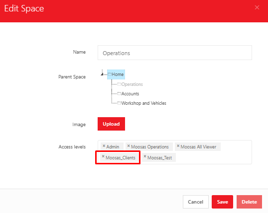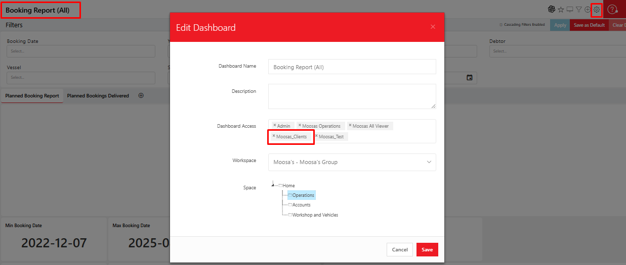 In my example, the client needs access to the Operations space, and 4 relevant dashboards.