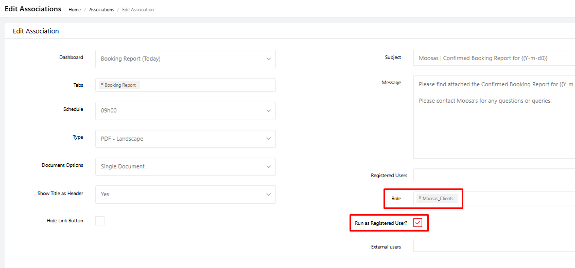 Under Dashboard Access, assign the Moosas_Clients Role.