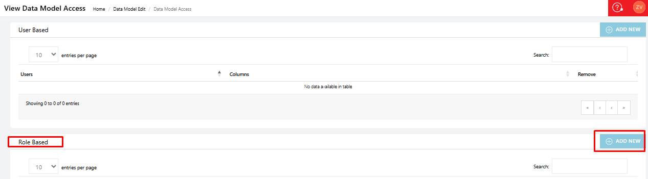 Choose Role Based (bottom) and click Add New because we are going to link numerous users from the same company to the Data Model.